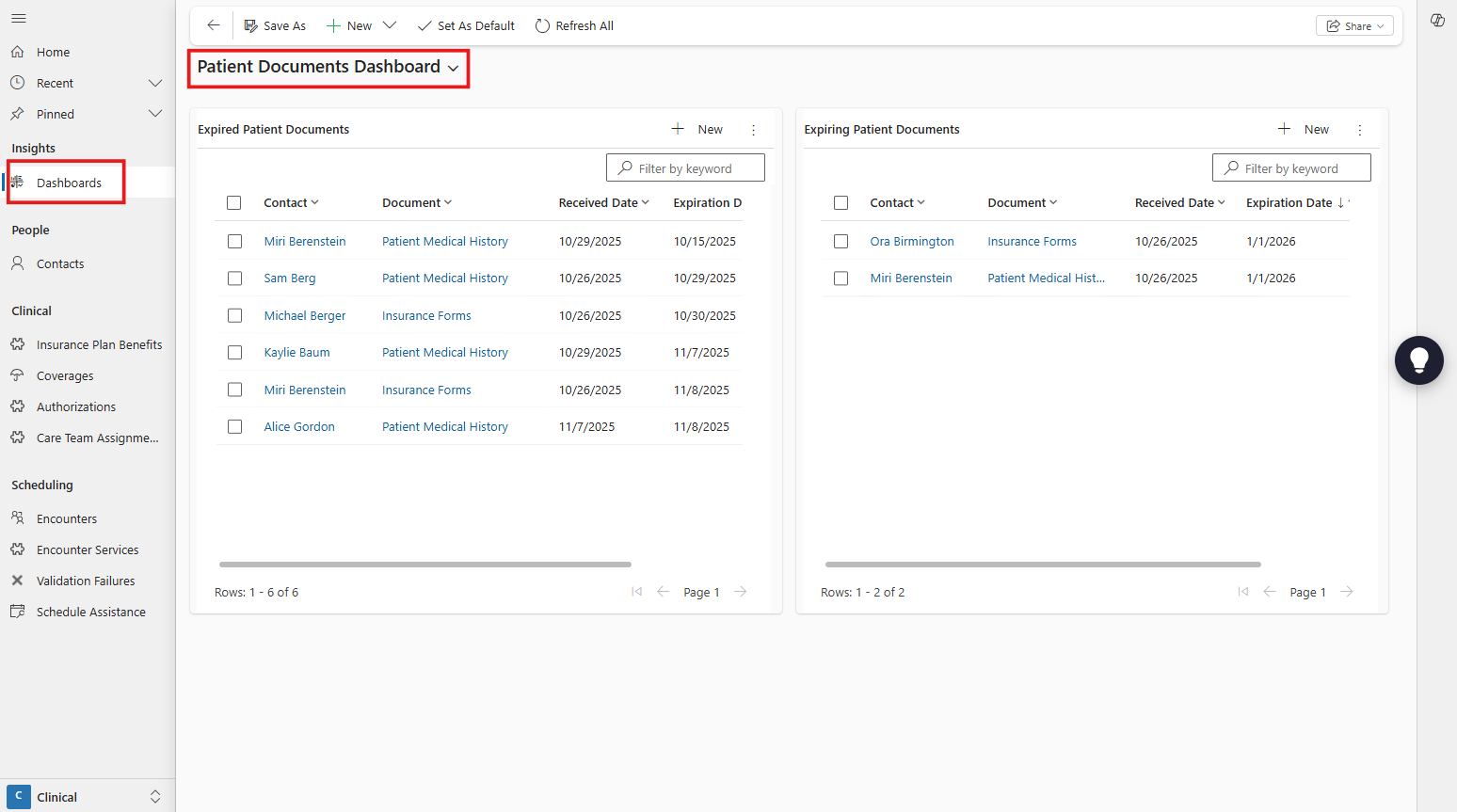 You can also view expiring and expired patient documents on the Patient Documents Dashboard.