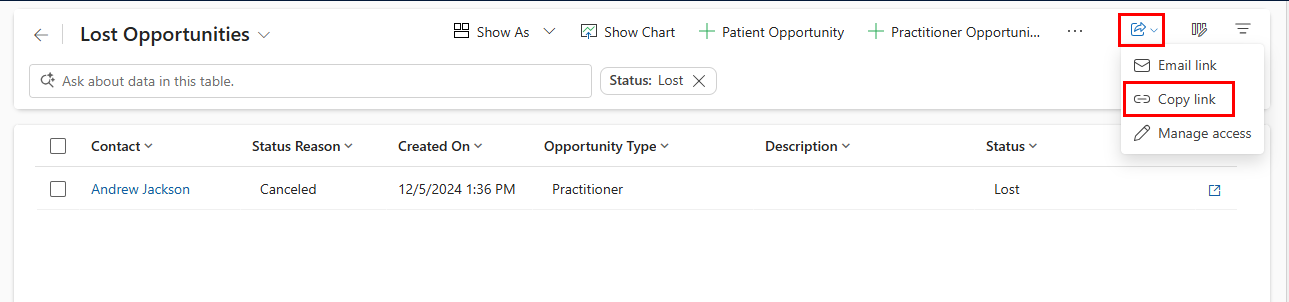 You can easily copy the link to the specific view you shared by clicking 'Share' in the top right corner.